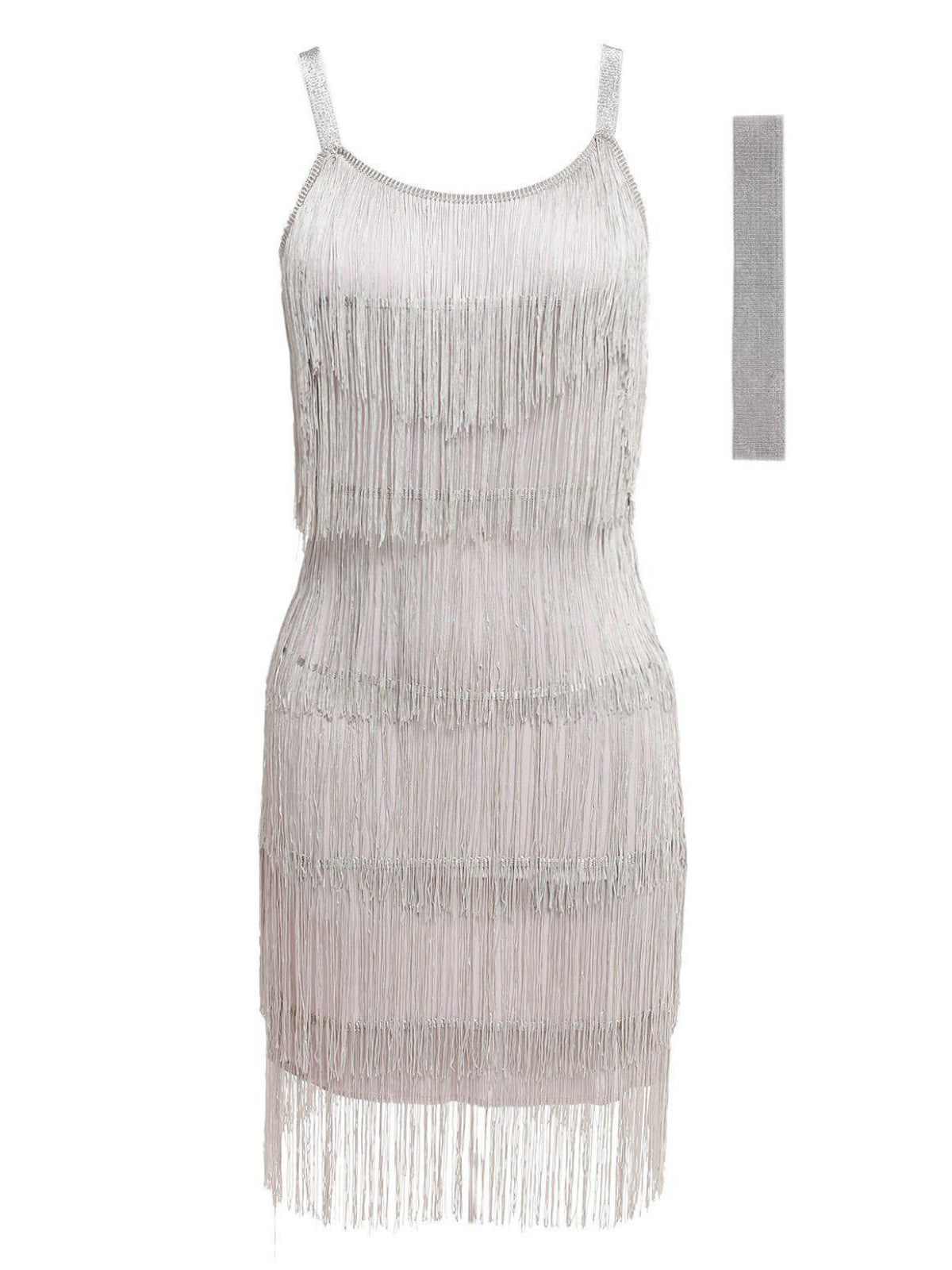 Your ticket to divinity, darlings! This striking flapper dress from Retro Stage shimmers with sequins throughout a vintage flapper silhouette. It is a beautiful knee-length dress infused with 1920s styling in lovely black, white and gray colors. The glitzy Art Deco vibes and sultry silhouette will have you shimmying and swaying with confidence.