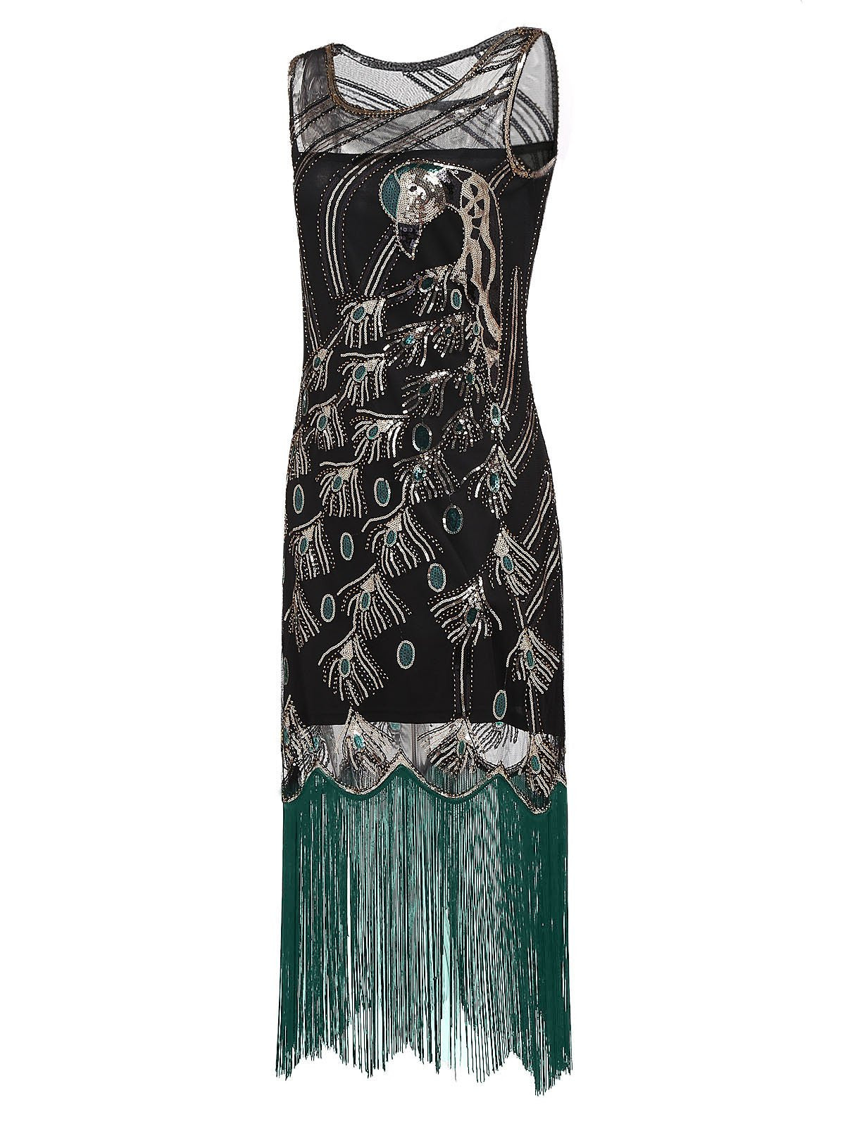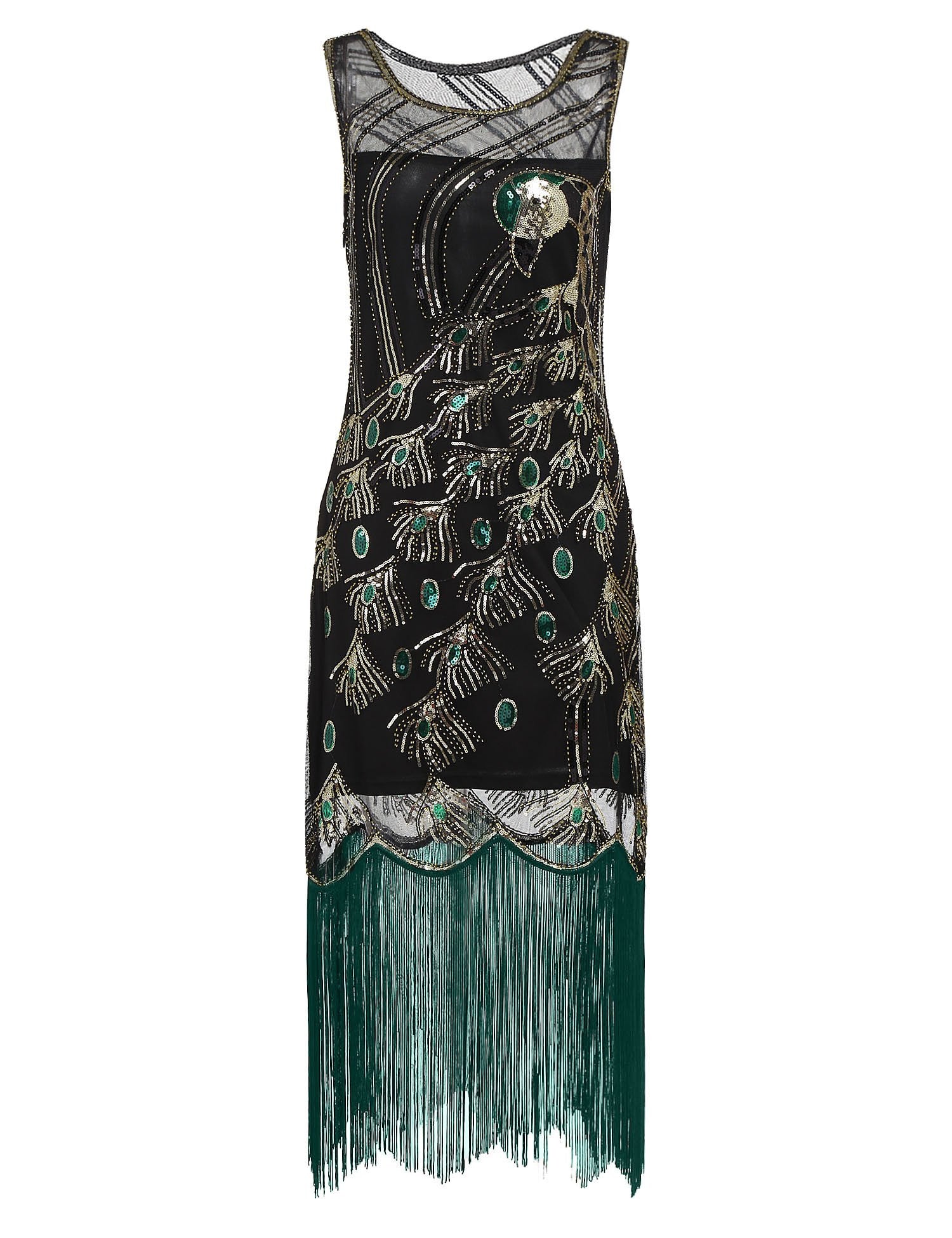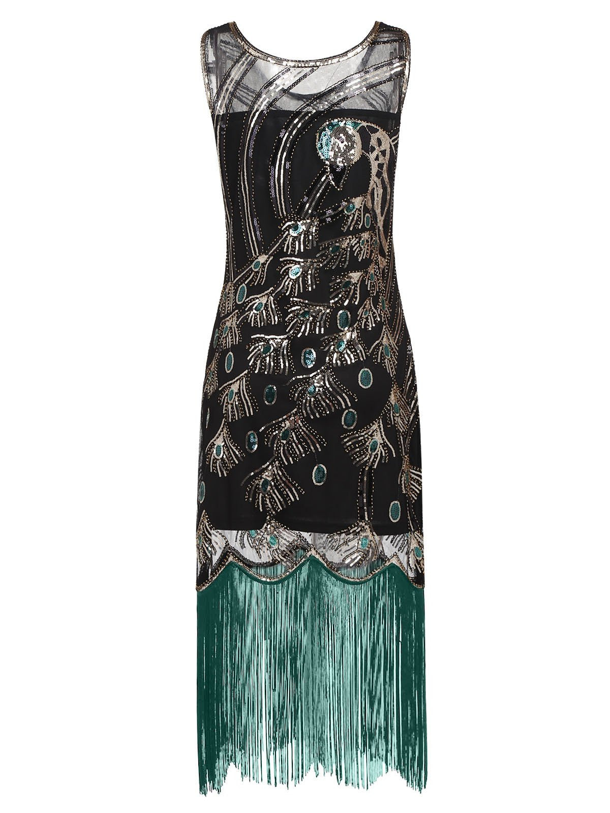 Shimmy some sparkle into your life, dear! Shimmer into an eye-catching vintage style with this iconic flapper dress from Retro Stage with crisp beading for a striking silhouette. Conjuring the splendor of the bygone 1920s jazz era, this gorgeous flapper dress is styled with a gently elasticized boat-ship neck complete with sleeveless.