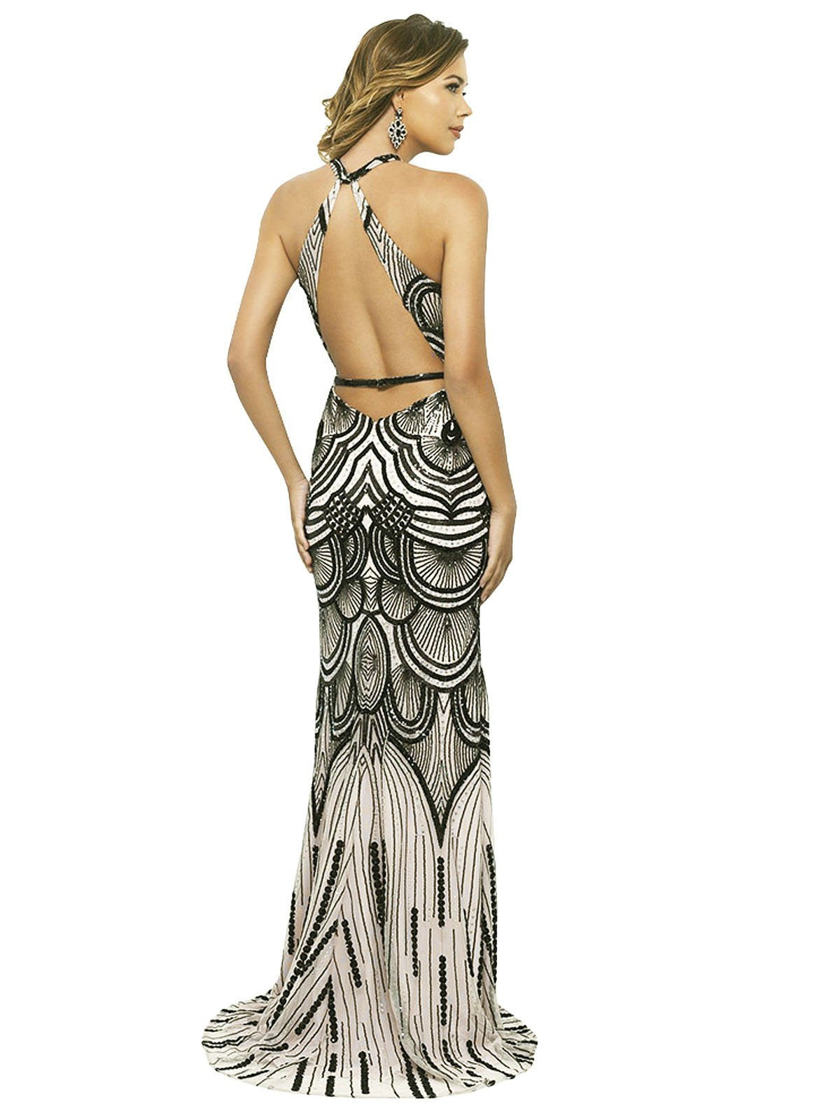 Your ticket to divinity, darlings! This Flapper Dress from Retro Stage is cast in an unstoppable 1920s-style cocktail dress that demands attention. With a classic halter neck, this angelic frock is complete with a sultry backless design. A twinkling array of black sequins curl throughout your feminine silhouette. Outfitted with a side zipper to flatter your feminine form, outshine the competition!