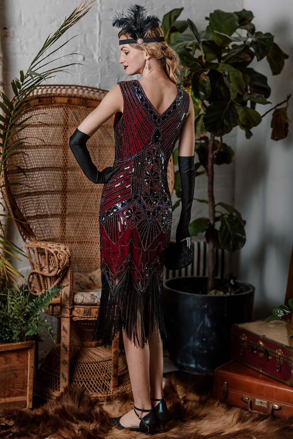 This is bringing in a new atmosphere, darling! This Flapper Dress from Retro Stage is cast in an unstoppable 1920s style cocktail dress that demands attention. The modest V neck is framed by sweet sleeveless that shimmy with a dazzling fringe. Never stop dancing, darling.