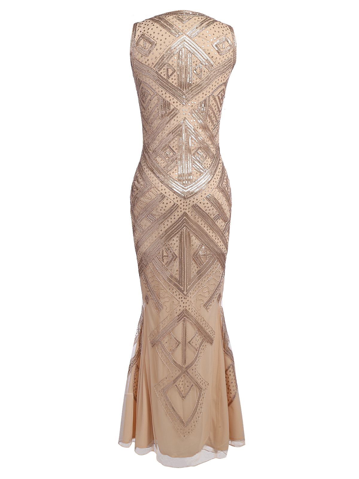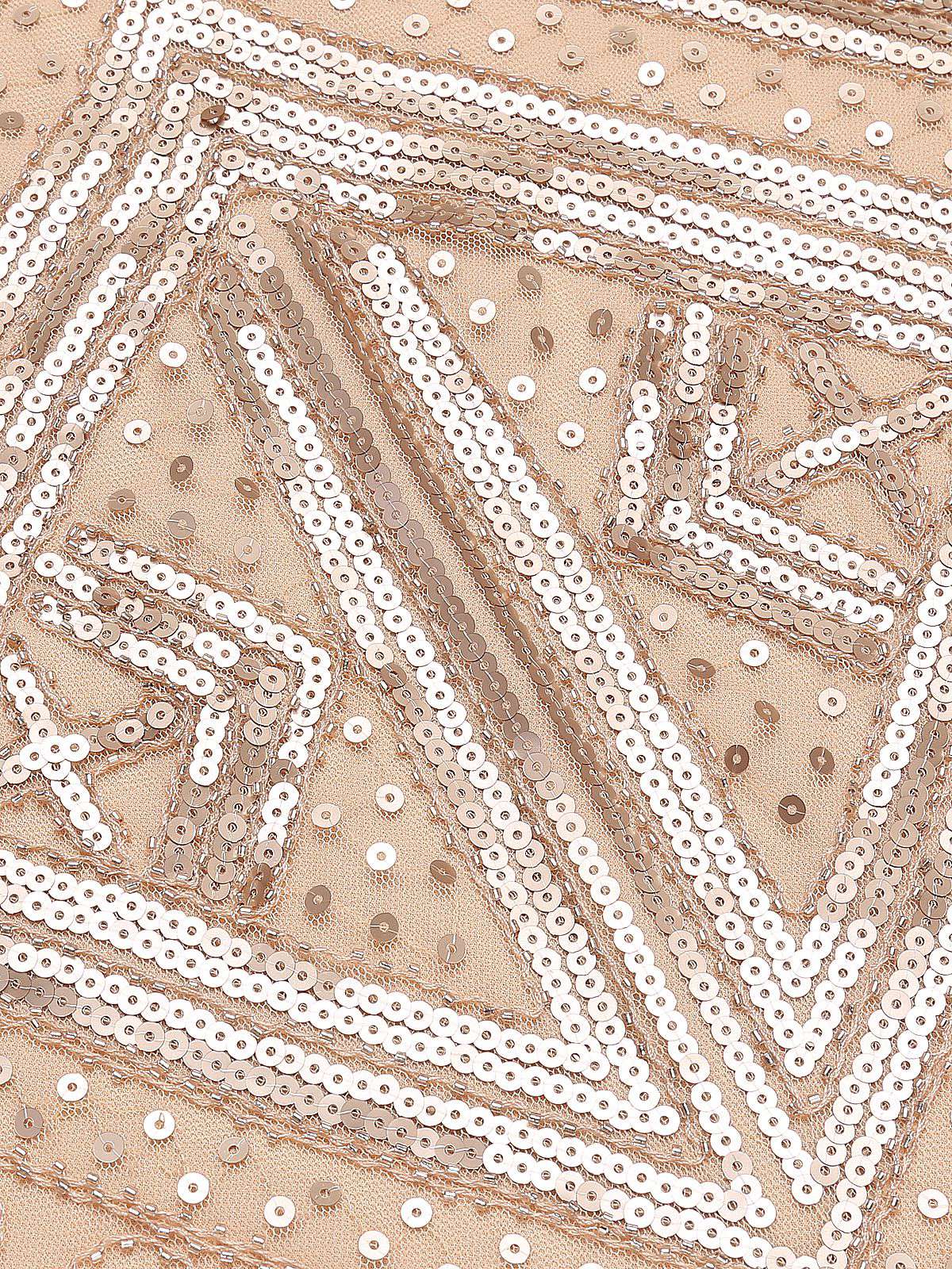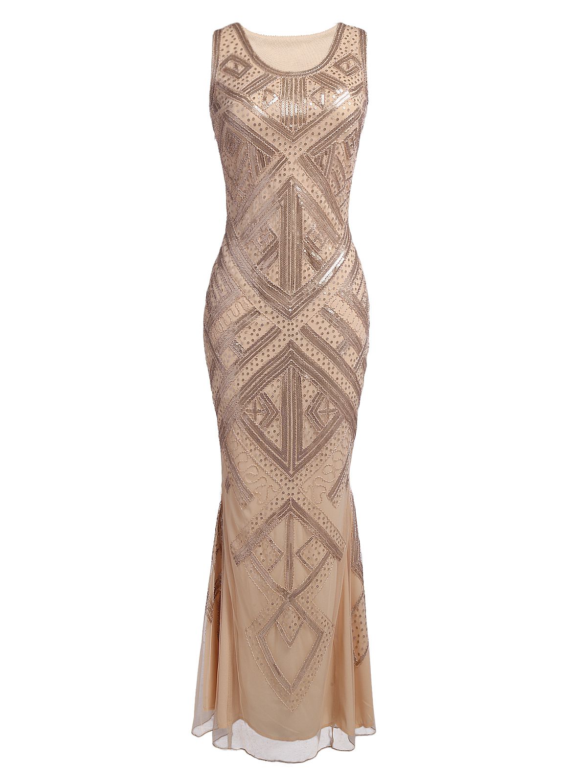This is bringing in a new atmosphere, darling! A twinkling array of beige sequins curl throughout your feminine silhouette. Shimmer into an eye-catching vintage style with this iconic flapper dress from Retro Stage with crisp beading for a striking silhouette.