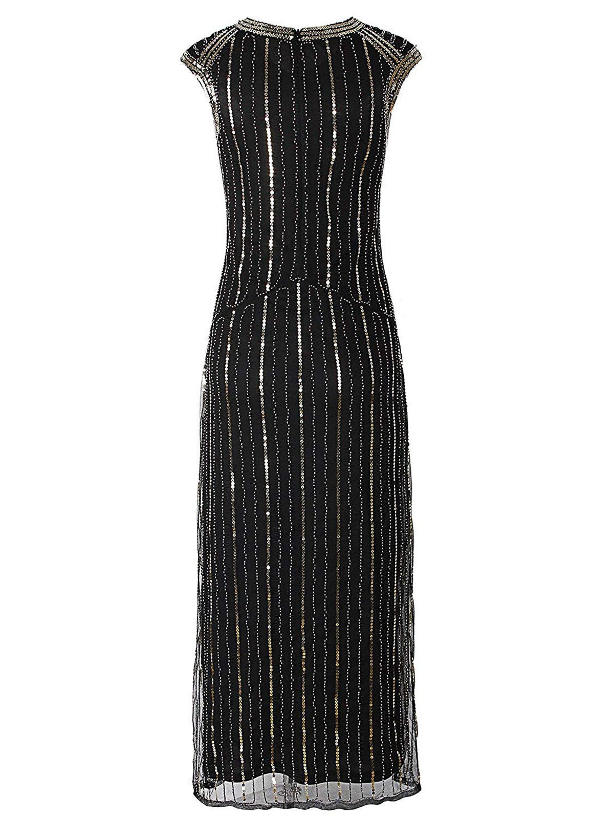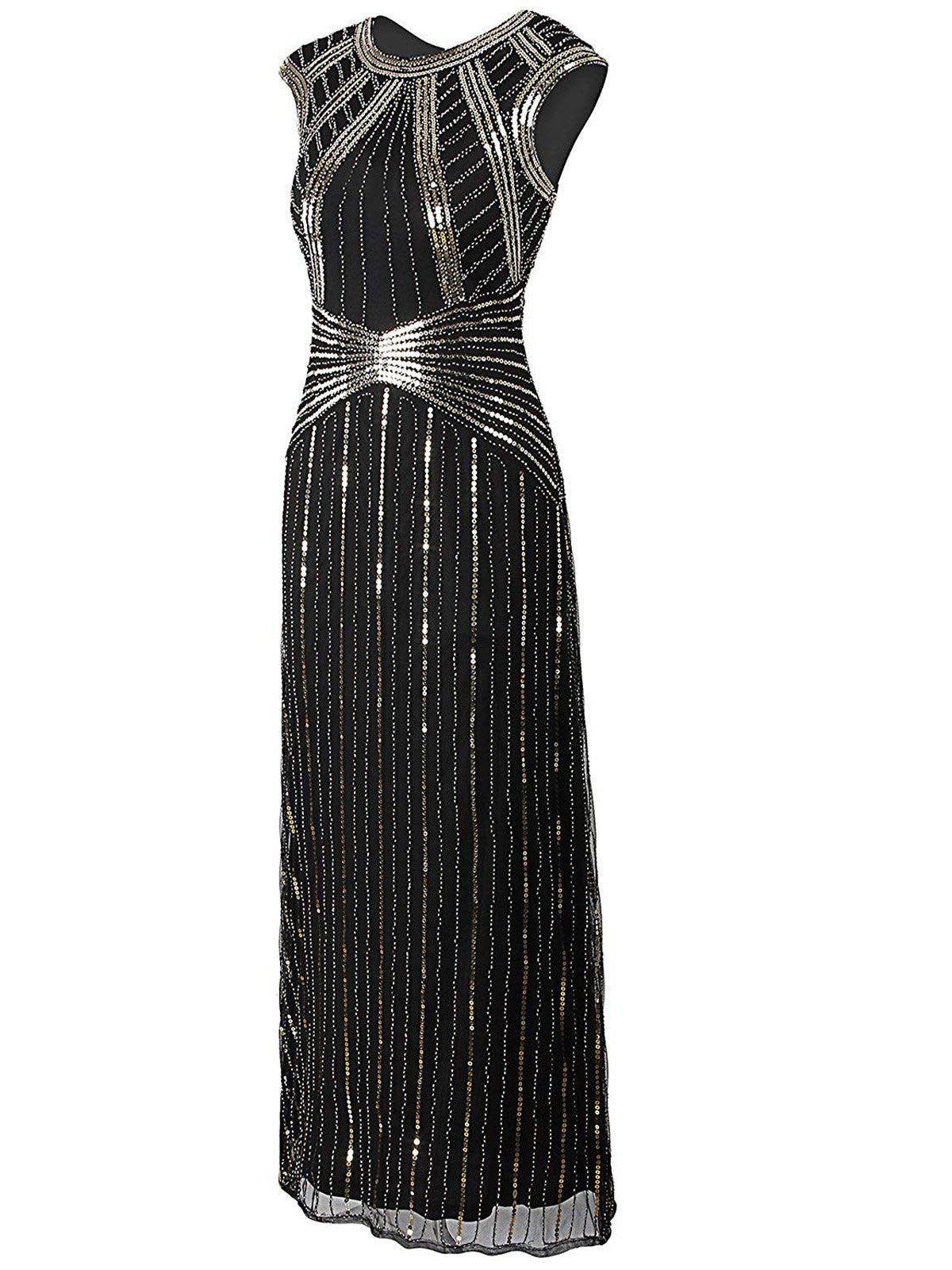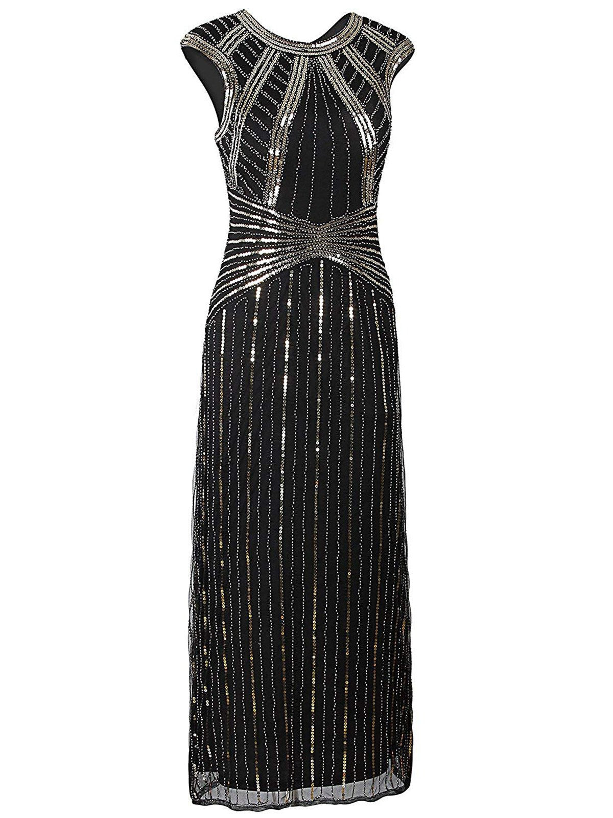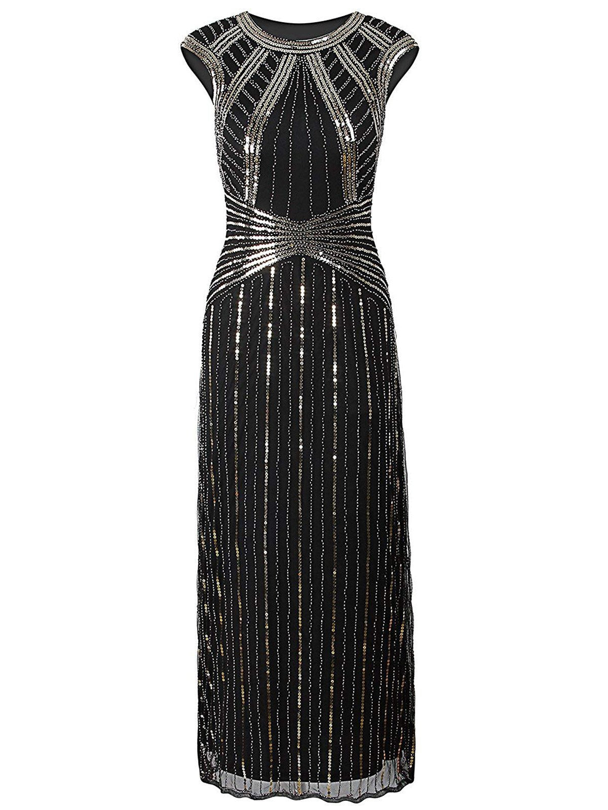 Let us know when you’ve popped your eyes back in! Thanks to swirling sequin patterns, it sparkles and shines all night long. Plus, the sultry O neckline and cap sleeves make it even more alluring. This stunning 1920s-style frock from Retro Stage is a gorgeous deco affair in a fabulous flapper design.