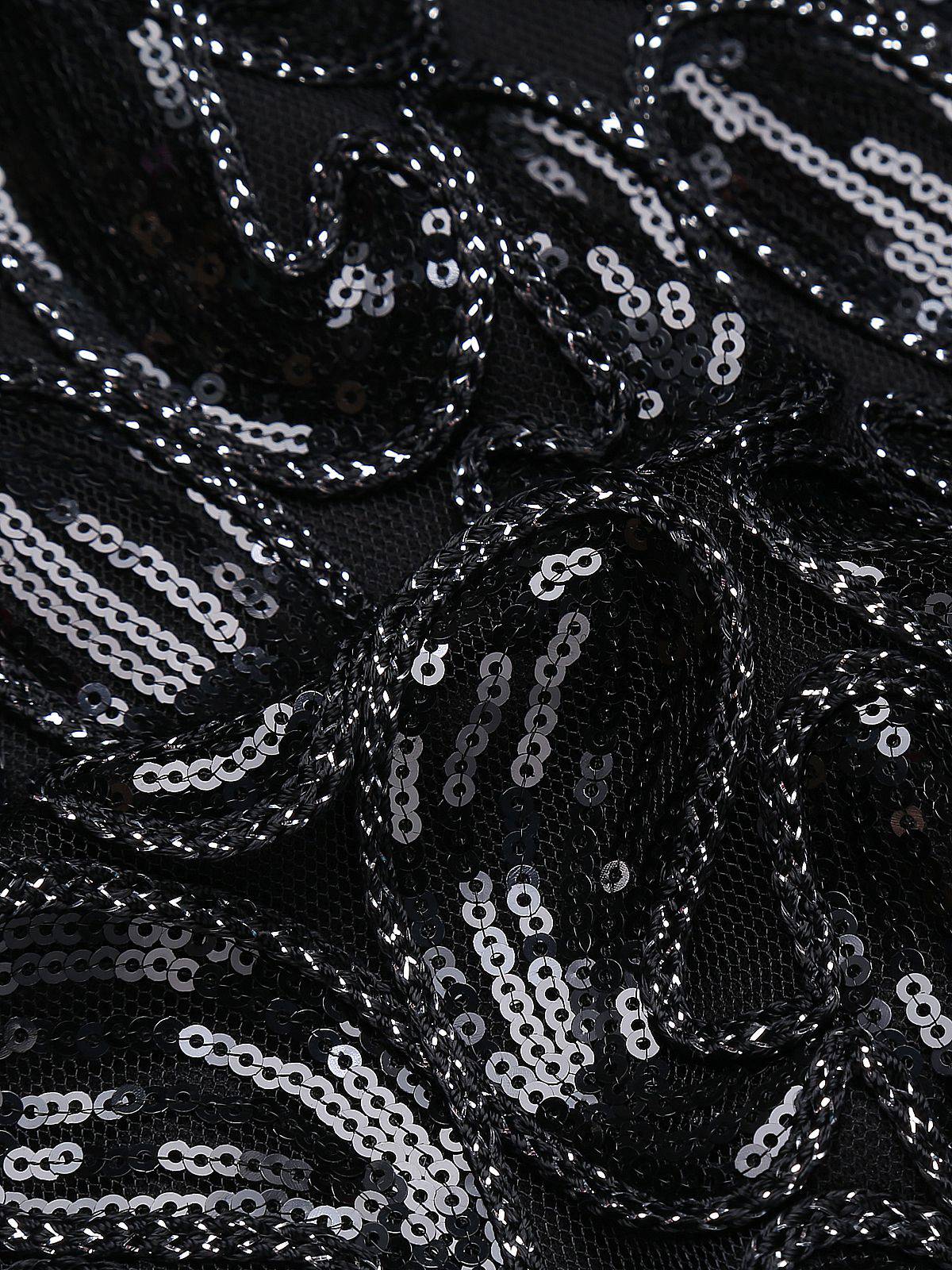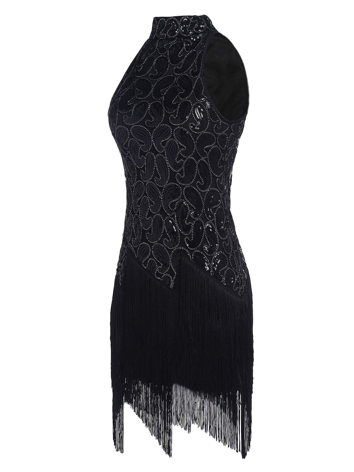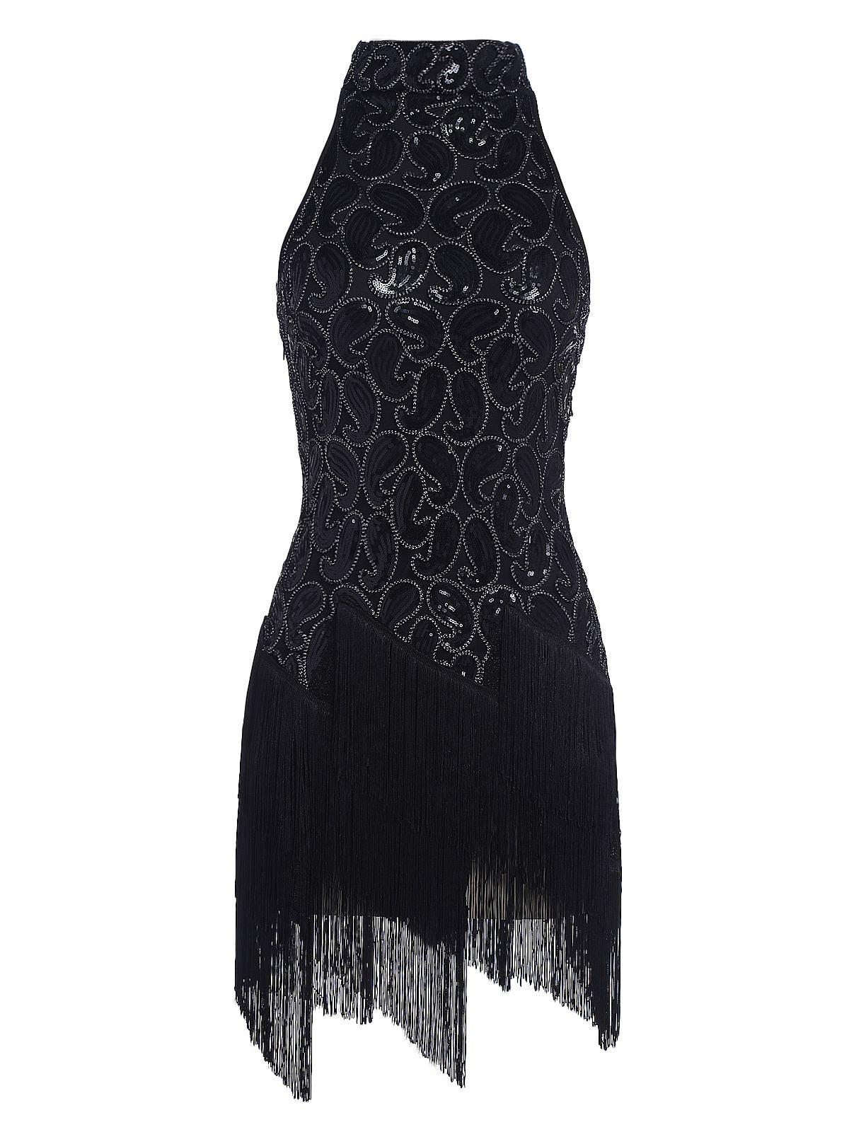 Your ticket to divinity, darlings! Intricately deco beaded silver sequins boast iridescent sequins and small beads wrought in flourishing deco swirls and spirals, while black knit lining creates a radiant effect. With a bit of royalty and aristocratic detail, this flapper dress is fresh from Retro Stage in stunning 1920s design.
