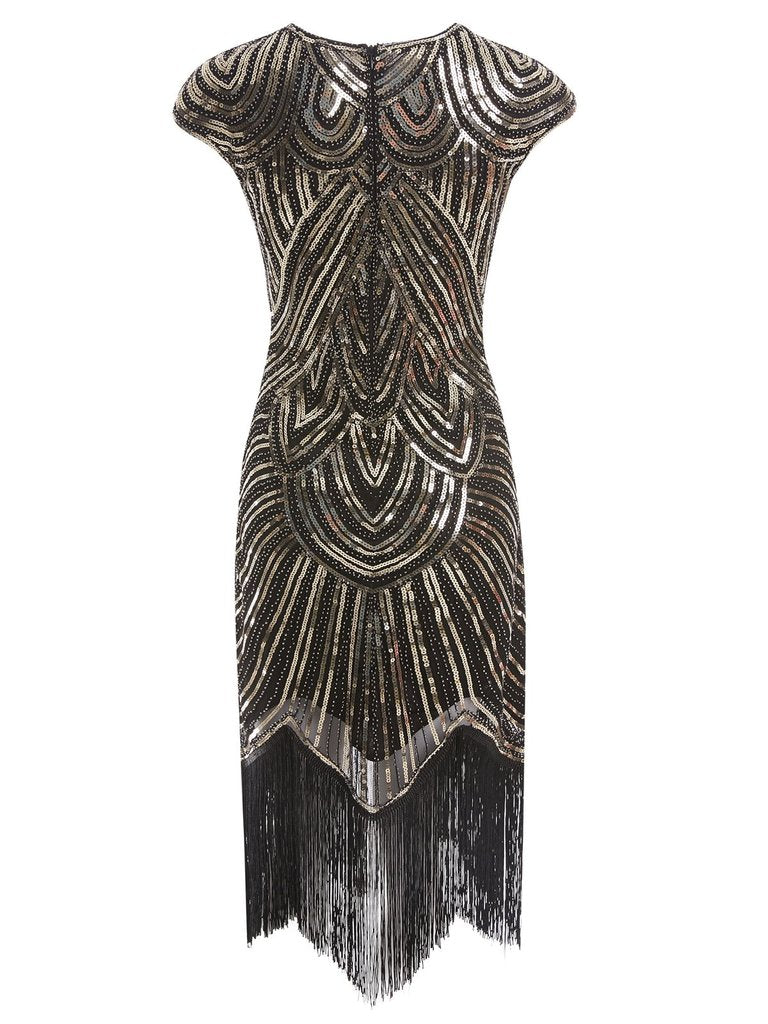 • [US Warehouse] Gold 1920s Sequin Beaded Fringed Dress