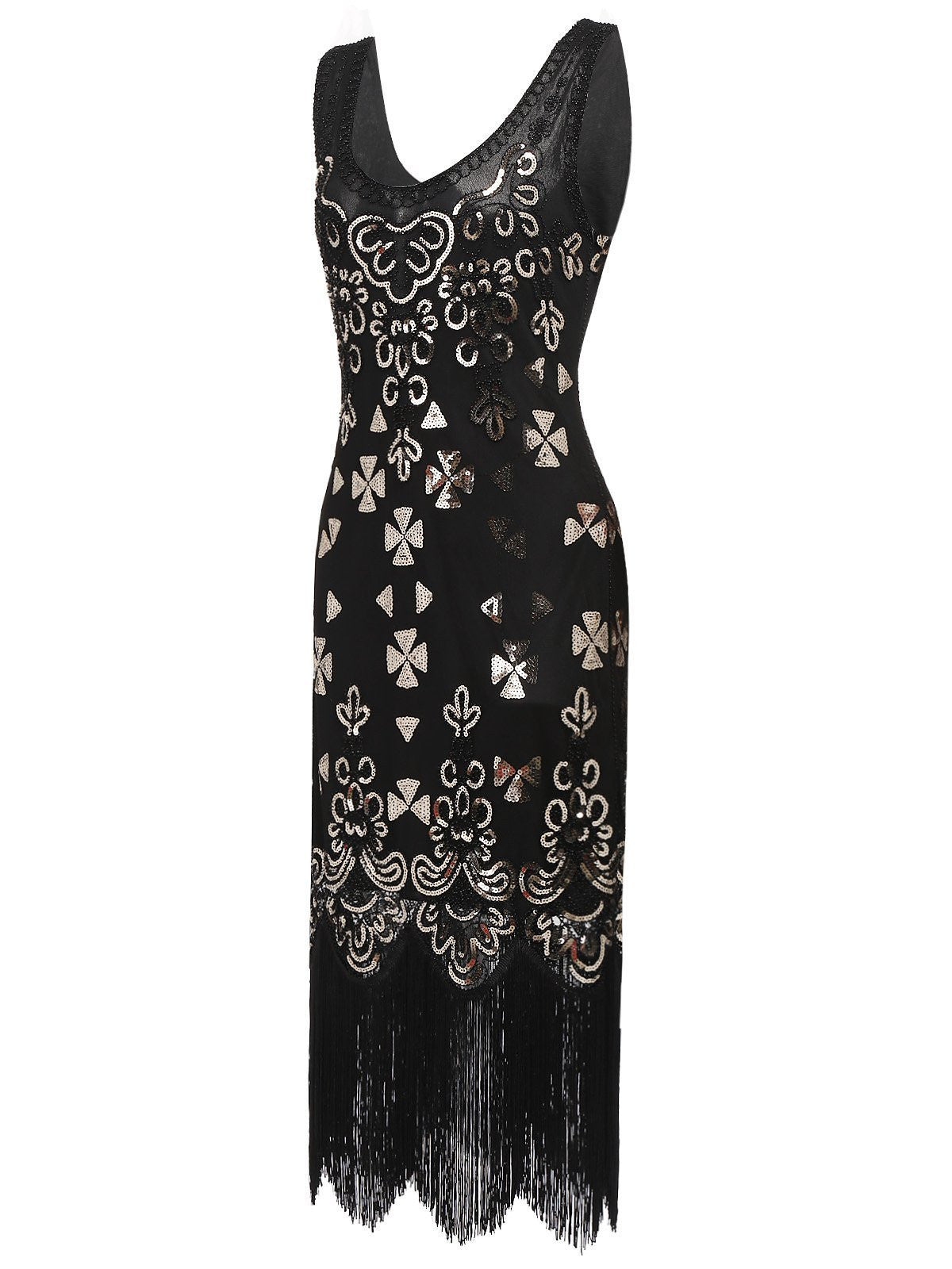 Shimmy some sparkle into your life, dear! A breathtaking vintage-inspired dress from Retro Stage. A dazzling array of Champagne sequins cascade down to a tiered fringe scalloped hemline. Outfitted with a side zipper for an easy match with your favorite torch song! Prepare for flapper fabulousness!