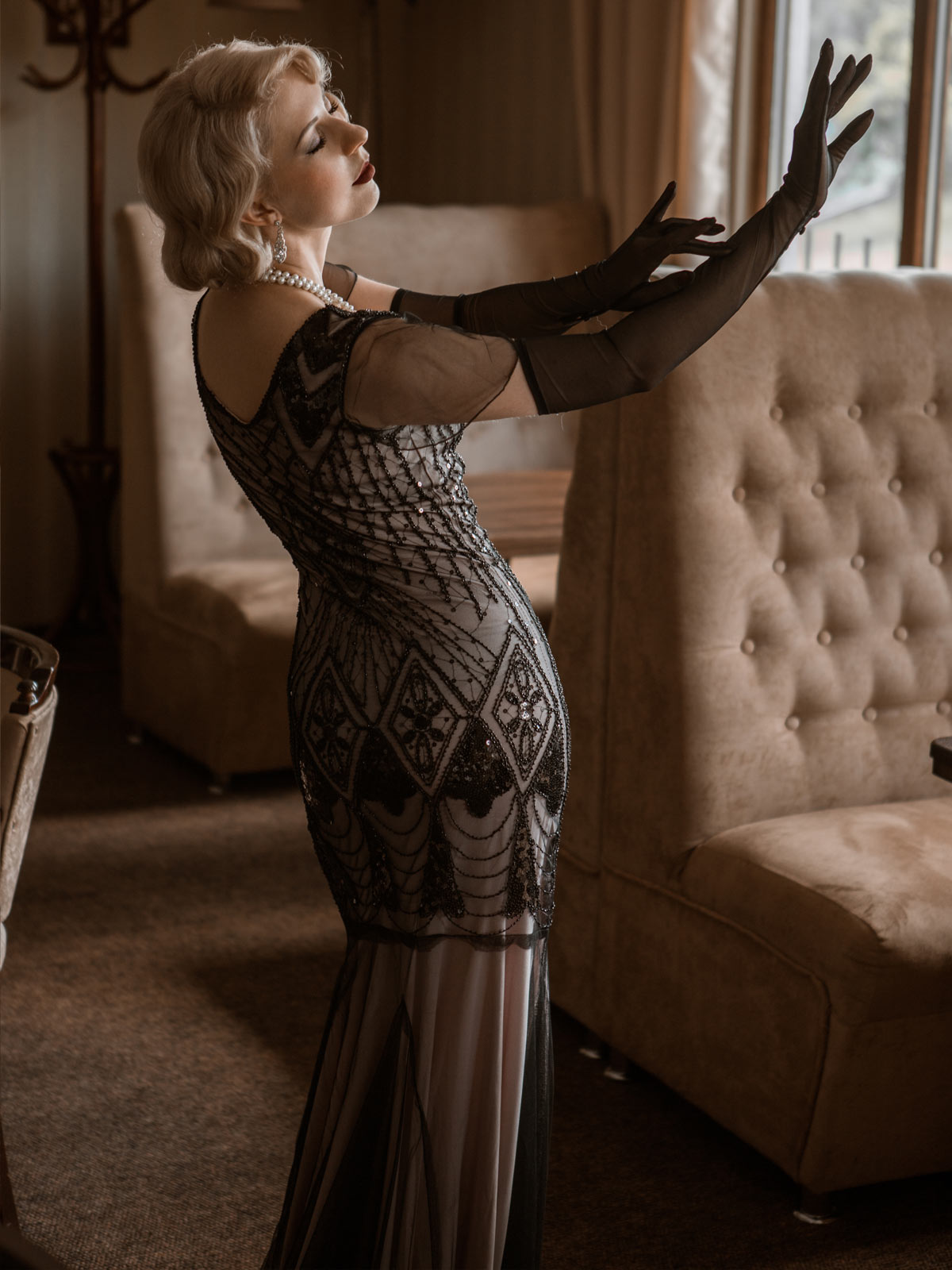 The Hollow to Floor measurement of our standard dresses already includes 2 inches(ca.5 cm) extra to fit high heels.
