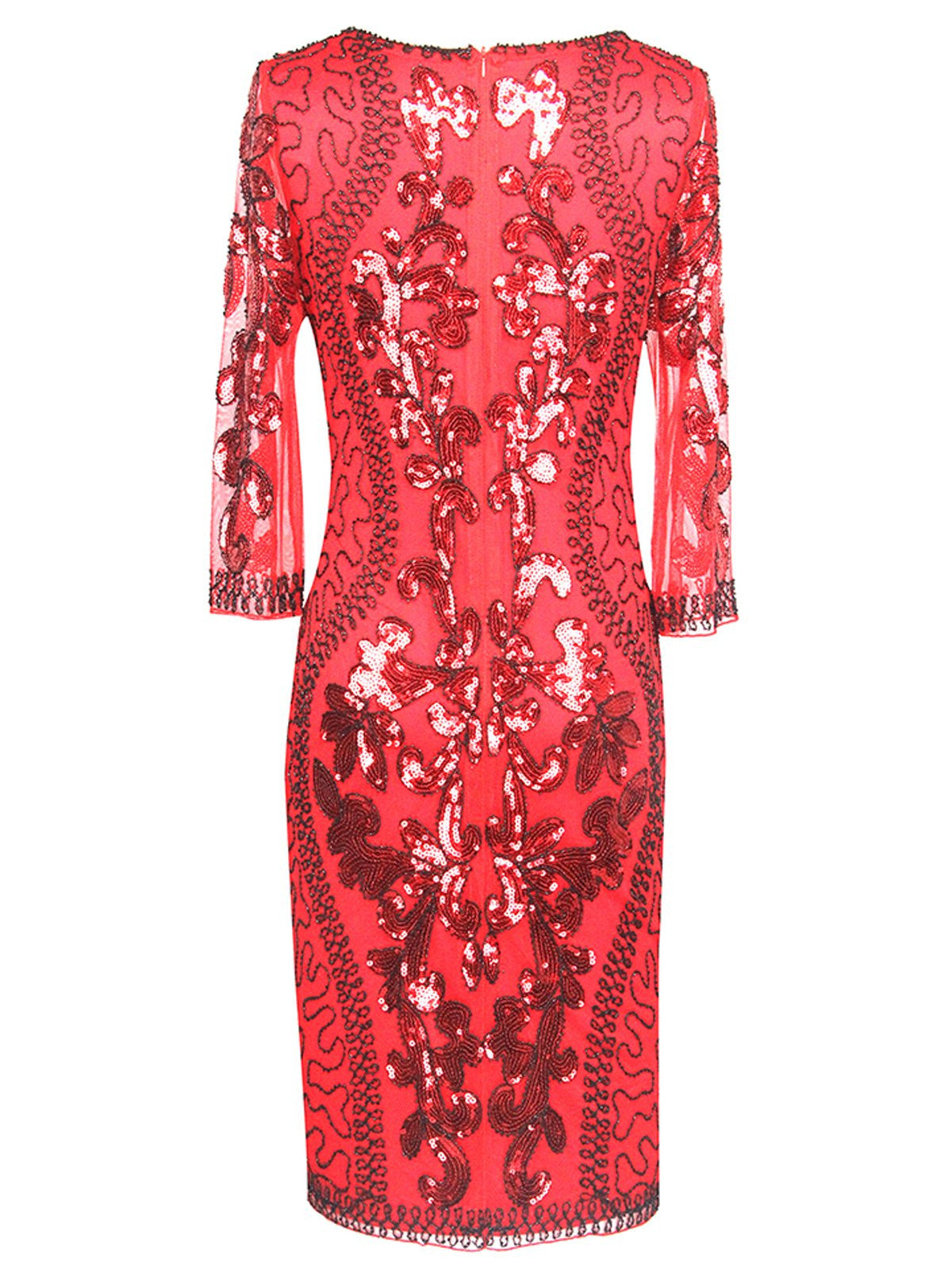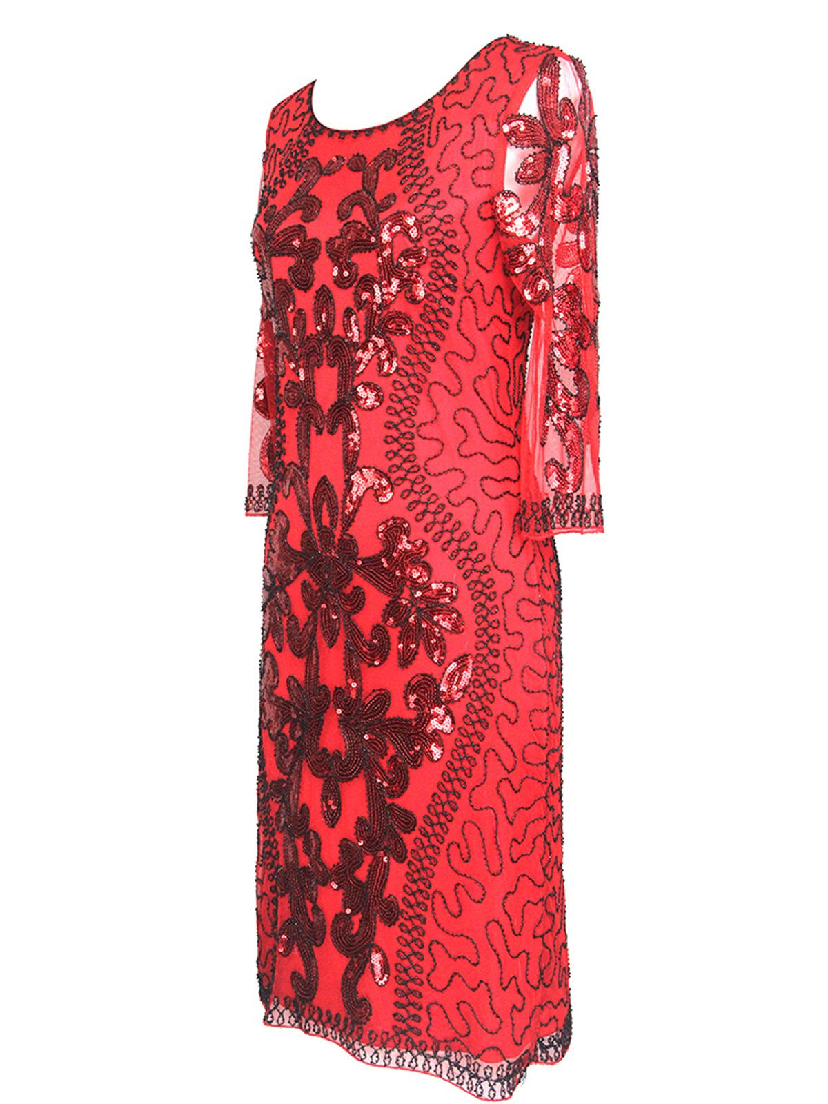 Sparkling, stylish, and spectacular! It’s all about the details with this stunning 1920s sequin gatsby dress from Retro Stage. Thanks to swirling sequin patterns, it sparkles and shines all night long. Plus, the sultry boat neckline and 3/4 sleeve make it even more alluring. Darted at the bust for a ravishing fit and outfitted with a back zipper to help you shimmy with the stars!