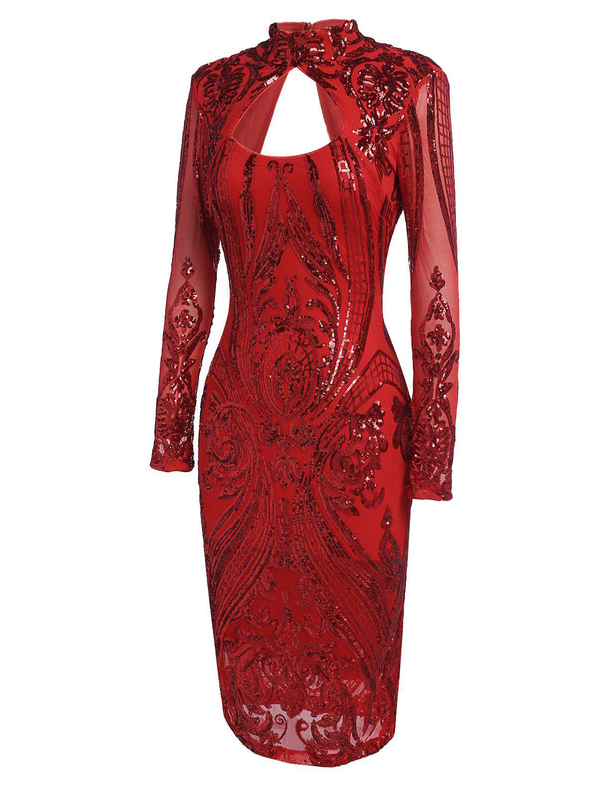 Shimmy some sparkle into your life, dear! With a classic mandarin collar, this angelic frock is complete with long fringe and a sultry front keyhole. This striking flapper dress from Retro Stage shimmers with sequins throughout a vintage flapper silhouette.