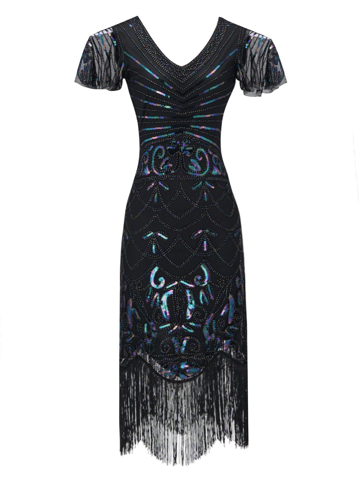 Let us know when you’ve popped your eyes back in! A breathtaking vintage-inspired dress from Retro Stage. The lace short-sleeve and V-neck design show you off with a modest touch. Outfitted with a back zipper for an easy match with your favorite torch song! Prepare for flapper fabulousness!