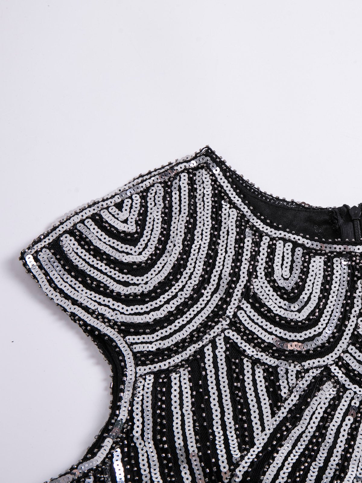 Show off some opulence, darling! This stunning 1920s-style frock from Retro Stage is a gorgeous deco affair in fabulous flapper design. Thanks to swirling sequin patterns, it sparkles and shines all night long. Plus, the sultry boat neck and cap sleeves make it even more alluring. Outfitted with a back zipper to flatter your feminine form, outshine the competition!