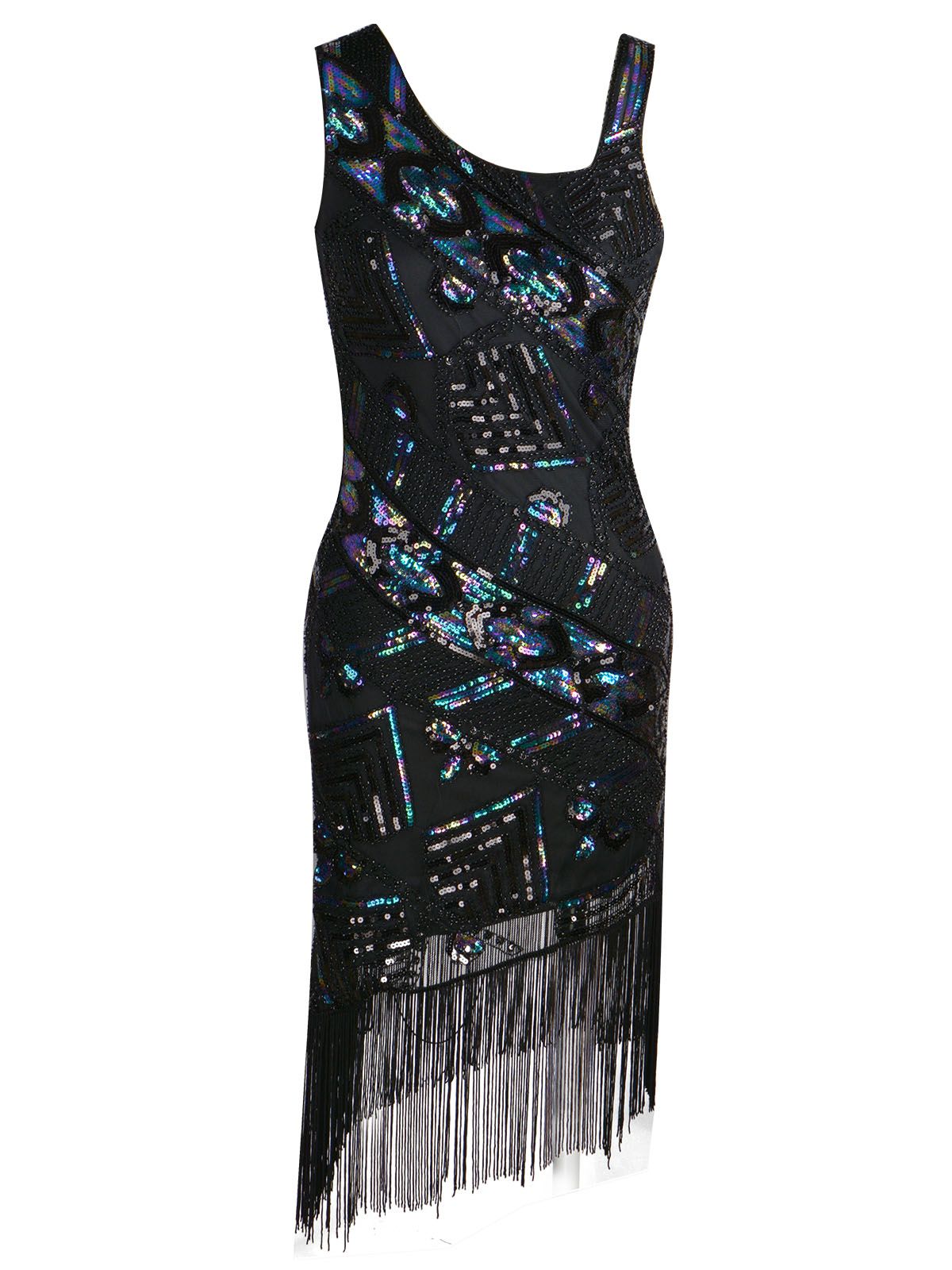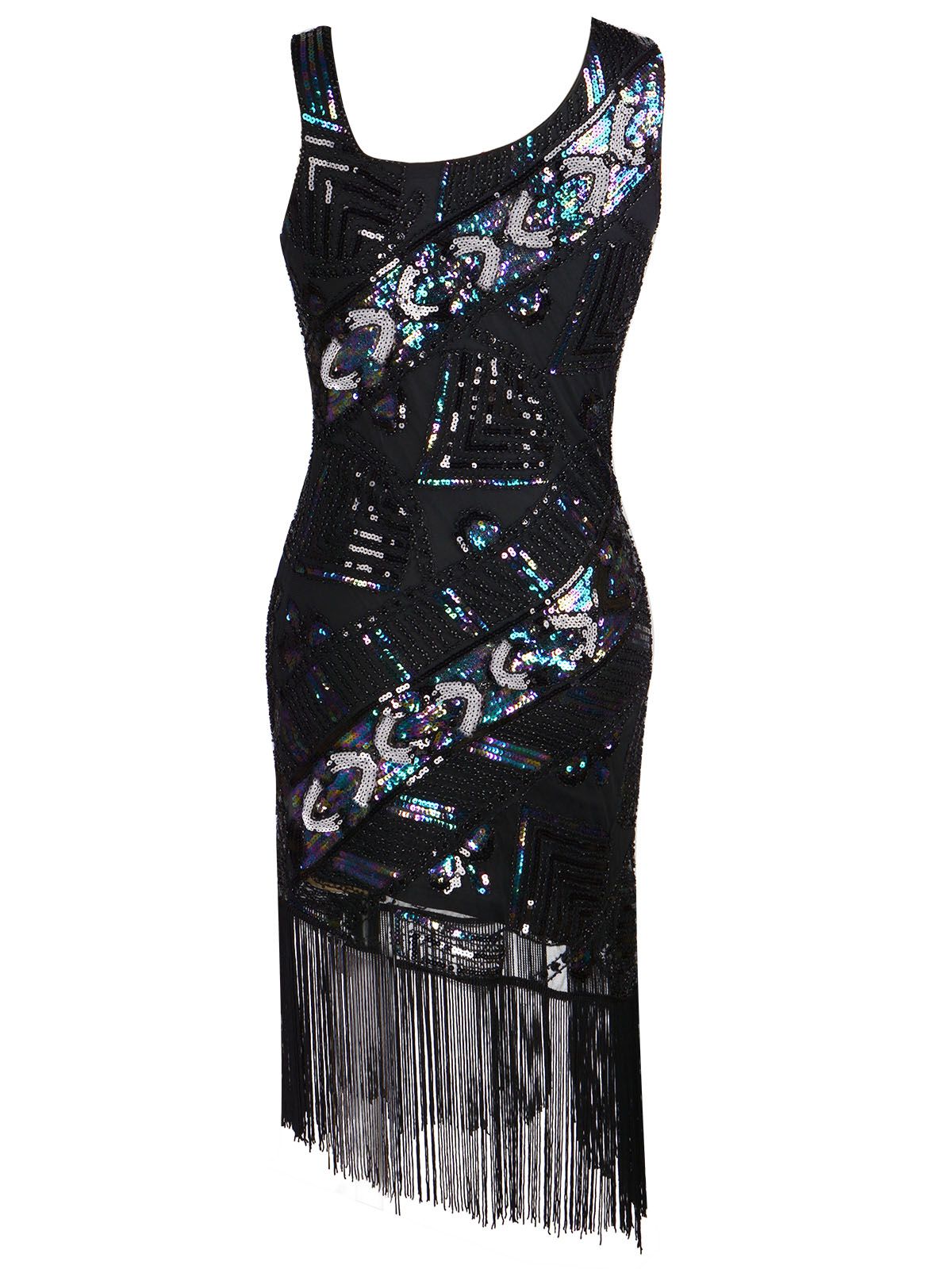 Your ticket to divinity, darlings! Gleaming from every angle, the fitted form drops to a straight hemline that sways with long lovely fringe. A sweet silhouette full of 1920s glamour, this flapper dress from Retro Stage is infused with a modern touch for a fabulous cocktail party.