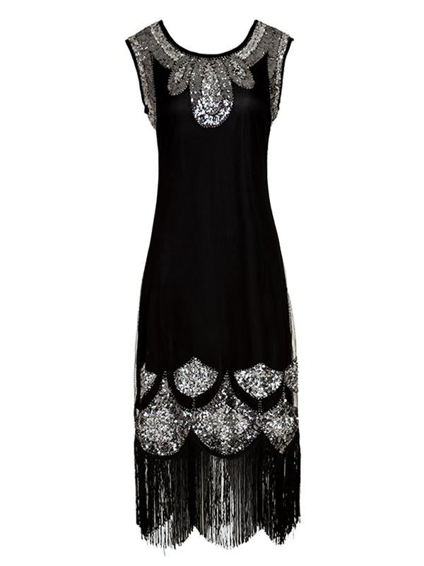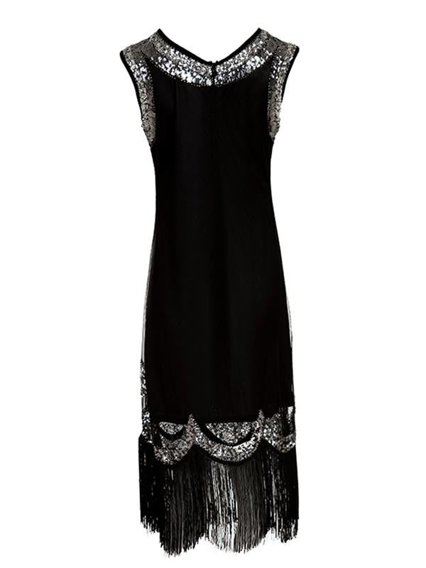 This is bringing in a new atmosphere, darling! A breathtaking vintage-inspired dress from Retro Stage. Steal some hearts at your next cocktail party with this Gatsby dress, a sultry sleeveless form with a modest round neckline and a comfortable knit lining. Outfitted with a back zipper for an easy match with your favorite torch song!
