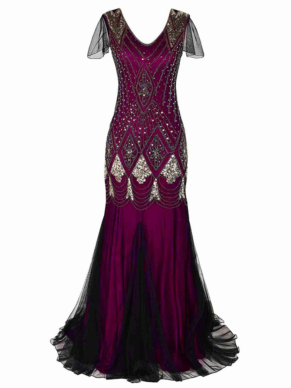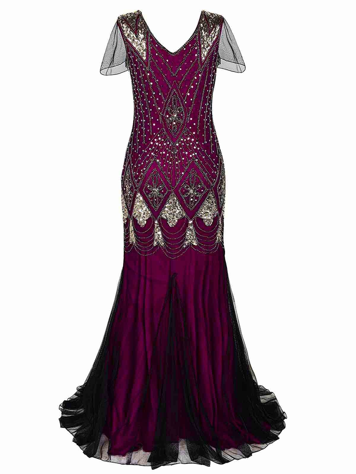 Rose Red 1920s Sequined Maxi Flapper Dress